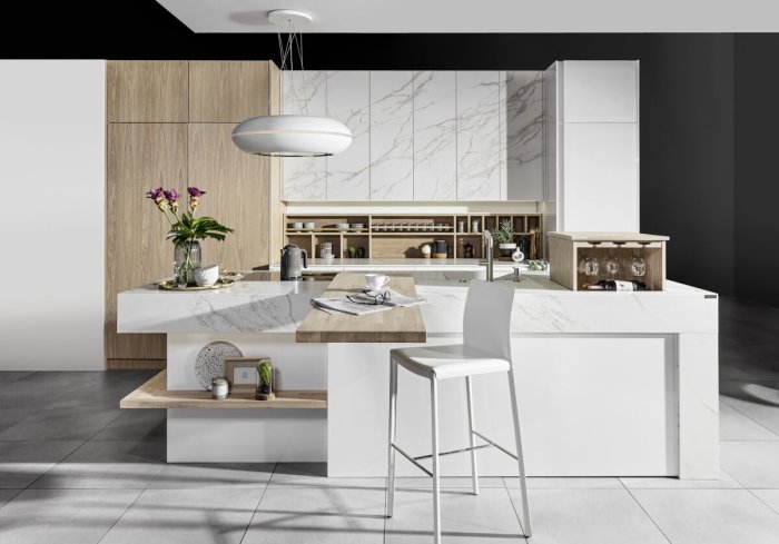 Spodobał Cię się marmur, jednak ciemny brąz to nie Twój kolor? Marzysz o białej, nowoczesnej kuchni? Jeżeli odpowiedź brzmi TAK, spójrz na kuchnię GRAZIA, marki Halupczok, która urzeka swą prostotą i dostosowuje się do indywidualnych potrzeb mieszkańców. Biała kuchnia w nowoczesnym stylu ma być nie tylko piękna, ale też funkcjonalna. Posiada więc drewniany regał, który pomaga zapanować nad kulinarnym rozgardiaszem, a także mobilny barek schowany w blacie wyspy kuchennej. Naturalne materiały, połączone z łagodną bielą, podkreślają nietuzinkowość takiego rozwiązania. Całość jest więc przykładem przestrzeni pełnej wyrazu i klasy. Odwiedź salon Halupczok w Gliwicach i daj się oczarować!