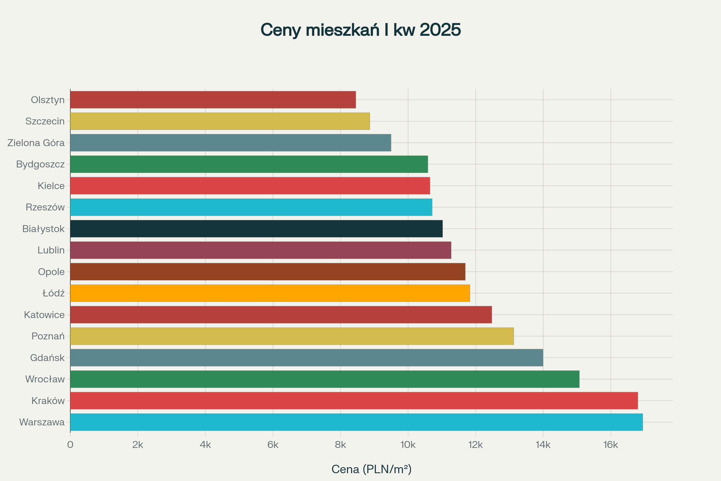 Łódź zajmuje siódme miejsce w rankingu najdroższych miast wojewódzkich w Polsce z średnią ceną 11 831 PLN/m². W porównaniu do Warszawy, gdzie ceny wynoszą 16 948 PLN/m², mieszkania w Łodzi są o około 30% tańsze. Ta znacząca różnica cenowa czyni Łódź atrakcyjną alternatywą dla osób poszukujących mieszkania w dużym mieście wojewódzkim o stosunkowo przystępnych cenach.